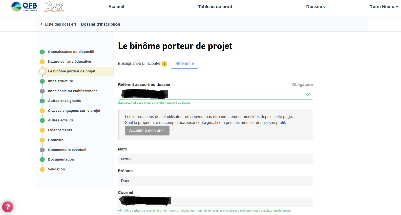 Identification du binôme porteur de projet :